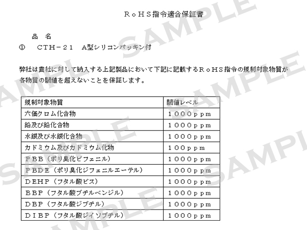 RoHS指令適合保証書の発行