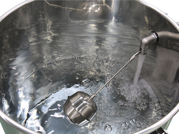 自動で給水できるように、ステンレス製のボールタップを取り付けました。