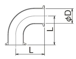 両ヘルールタイプ、90°のステンレスエルボです。