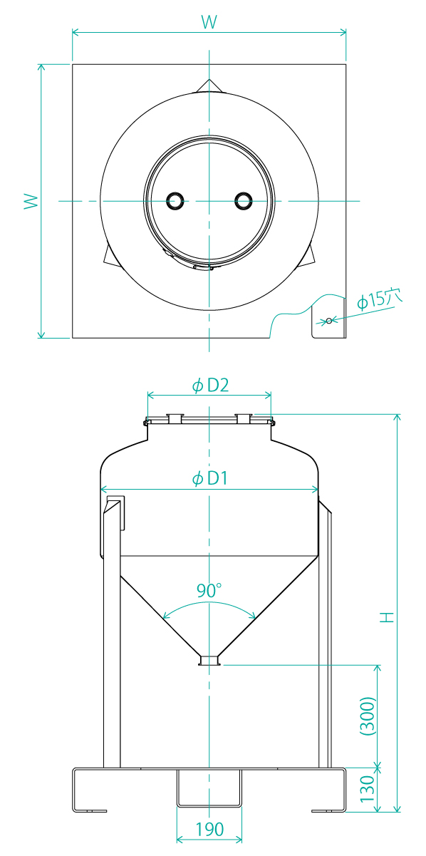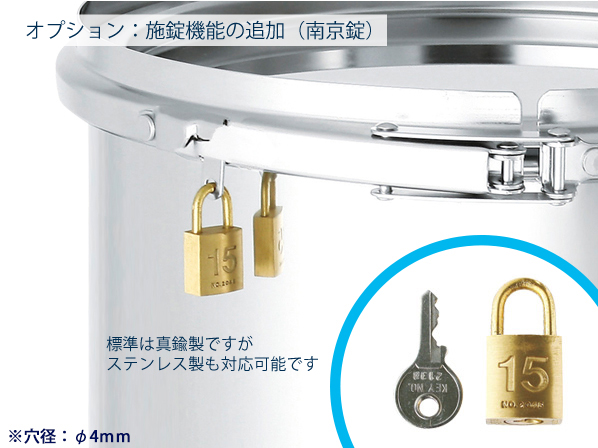 コンテナホッパーは、排出口の変更・蓋ノズルの変更・鍵の追加など様々なカスタマイズが可能です。