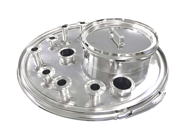 ○下部の排出口は、バルブなどの配管部品を取り付けできるヘルール形状です。