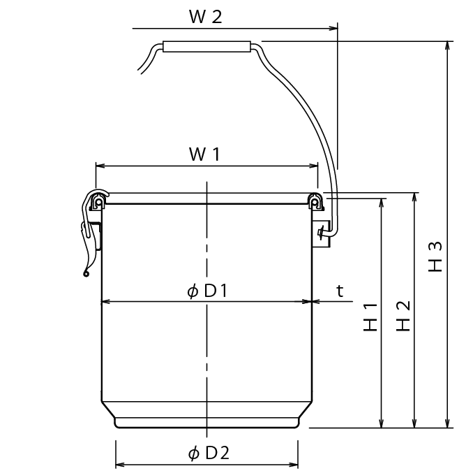 | 型式 | 容量 | 重量 | 内径 | 底径 | 容器外径 | 全幅 | 内高 | 容器高 | 全高 | クリップ | 板厚 | パッキン | パッキン | 納期 |