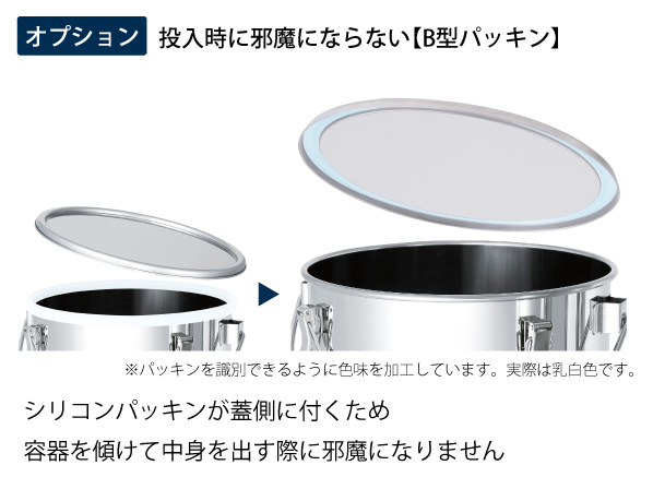 蓋側にセットする「B型パッキン」をオプションでご選択いただくことでよりスムーズな投入が可能です。