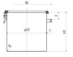 | 型式 | 容量 | 質量 | 内径 | 内高 | 最大幅 | 板厚 | 取っ手高 | 底 | クリップ | パッキン | 納期 | RoHS |