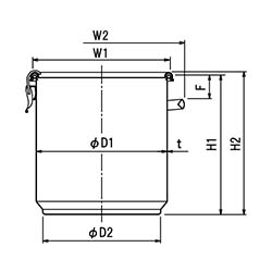 | 型式 | 容量 | 質量 | 内径 | 底径 | 容器高 | 全高 | 容器外径 | 最大幅 | 取っ手高 | クリップ | 板厚 | パッキン | 納期 | RoHS |