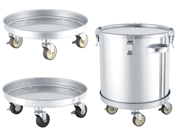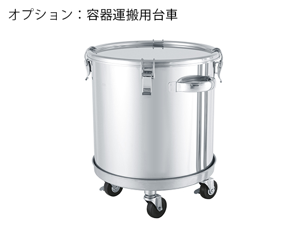 内径φ300mm以上の容器には、専用の容器運搬用台車をご用意しています。その他のサイズは特注対応となります。