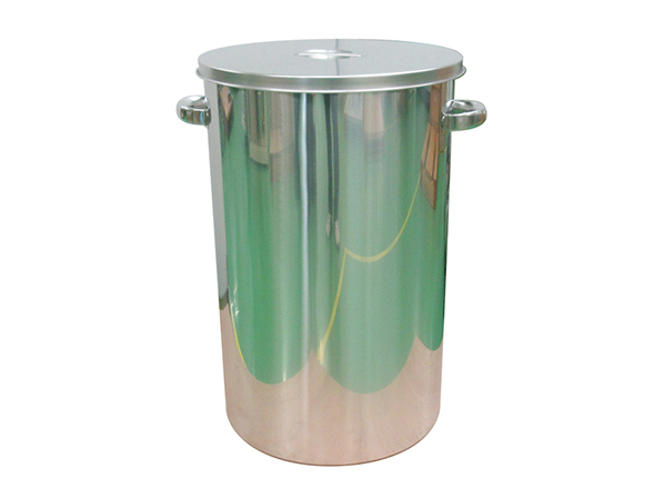 ○容量重視でスペースに合わせて内径と高さを変更した、ステンレス容器のオーダーメイド事例です。