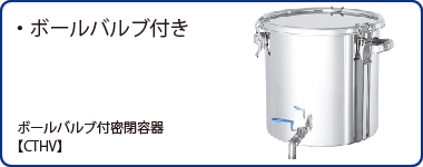 【CTH-W】は一般的な蛇口(黄銅+メッキ)が付いています。耐薬品性が求められる内容物の場合にはボールバルブ(ステンレス)付きの【CTHV】が適しています。
