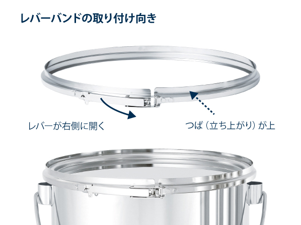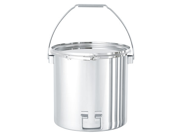 持ち運びしやすい吊り下げ取っ手付きの密閉容器。バンドで簡単に密閉できるステンレスタンクです。