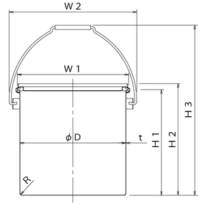 型式 容量 質量 内径 内高 容器外径 最大幅 容器高 全高 板厚 納期 RoHS