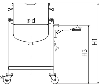 | 型式 | 容量 | 内径 | 容器高 | 取っ手高 | 作業台高 | 全幅 | 作業台幅 | 奥行 | 作業台奥行 | 板厚 | 耐荷重 | 納期 |