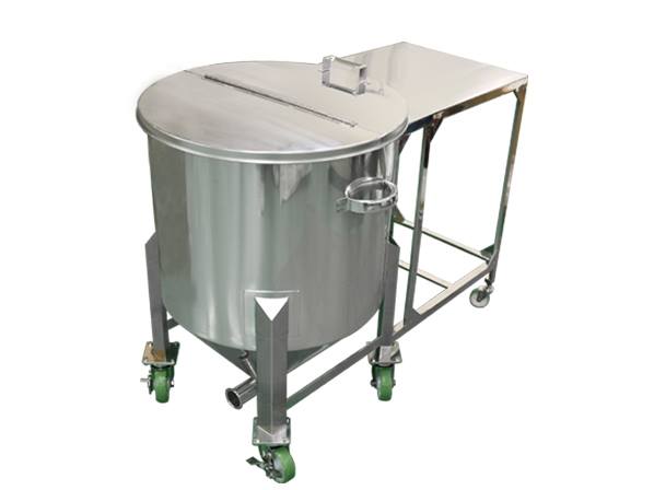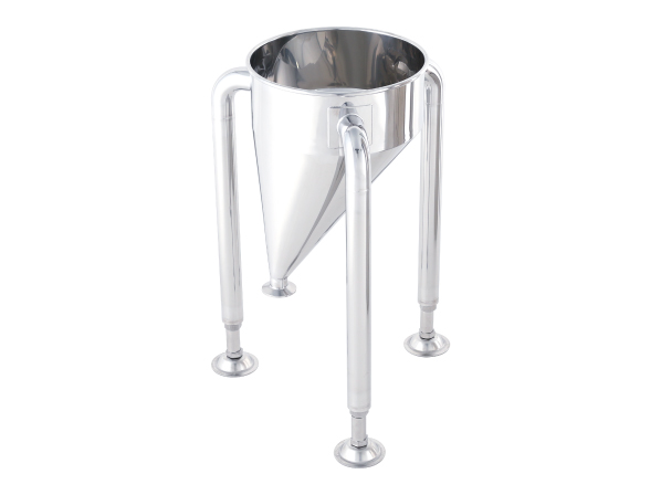 - 評価設備用 偏心ステンレスホッパー【採用事例】配管接続部への負荷を抑える脚付き仕様