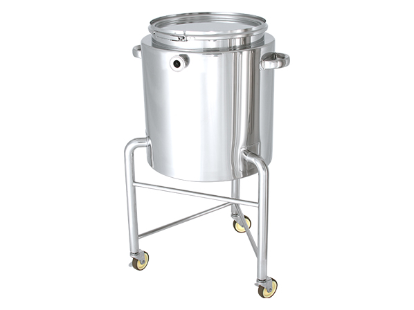 ・開閉蓋より原料を投入し撹拌後、移動先にて下部の排出口を製造機器に配管し内容液を排出します。