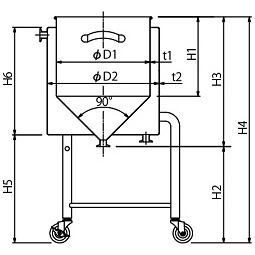 ホッパーはロートやじょうごのような形状、コニカルは円錐形状を指すようですが明確な決まりはなく、弊社ではどちらもホッパーと呼んでいます。