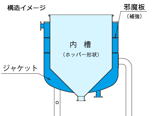 ○ジャケット部(外槽)に水を流し、内容物を保温・冷却できます。