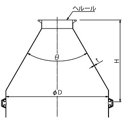 | サイズ | D | H | θ | t | サイズ | 日 | kg | ||