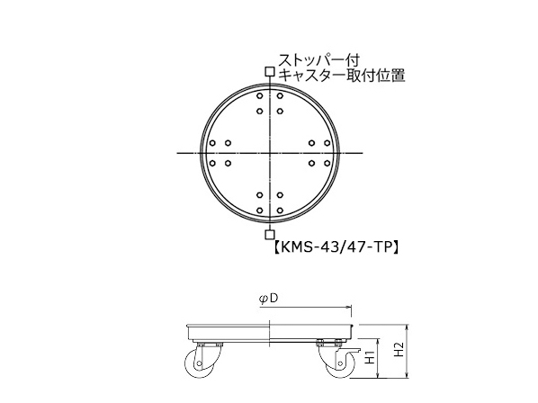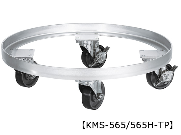 キャスターの材質が異なります。【KM-TP】(金具:SSクロムメッキ/車輪:ゴム車)【KMS-TP】(金具:SUS304/車輪:ナイロンウレタン車/ストッパー:6ナイロンと30%ガラス繊維)
