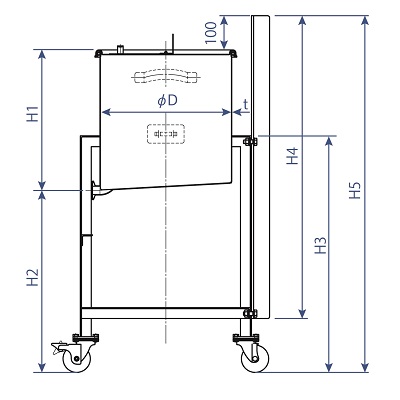 | 型式 | 容量 | 容器重 | 架台重 | 内径 | 内高 | ドレン高 | 架台高 | 撹拌機座高 | 全高 | 架台幅 | ドレン | 板厚 | 耐荷重 | 納期 |