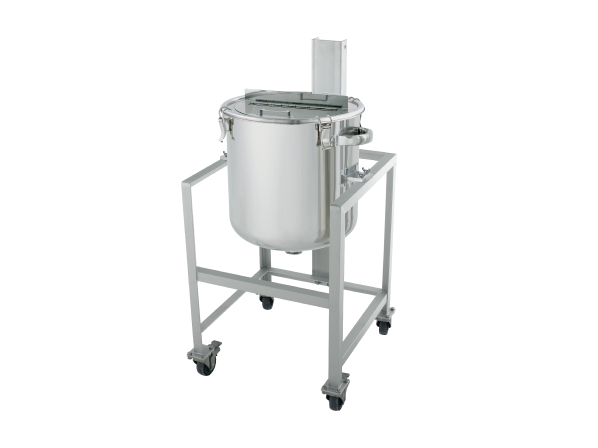 - リフター付きレシーバータンク【採用事例】食品原料の貯蔵・排出用ステンレスタンクのオーダーメイド事例です