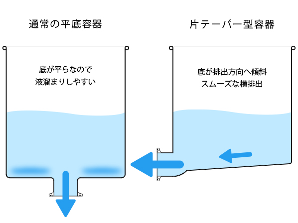 ○底板が排出方向に傾斜しているため、液体が全て排出できます。