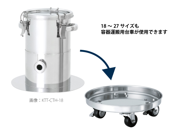 ※容器運搬台車【KMシリーズ】に乗せることができます。