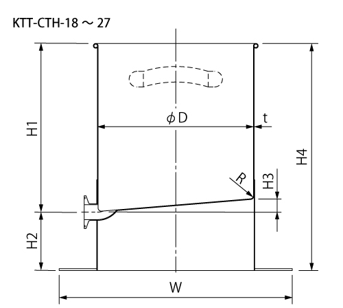 | 型式 | 容量 | 質量 | 内径 | 内高 | ドレン高 | 高低差 | 傾斜 | 全高 | 全幅 | ドレン | 底 | 板厚 | 納期 | RoHS |