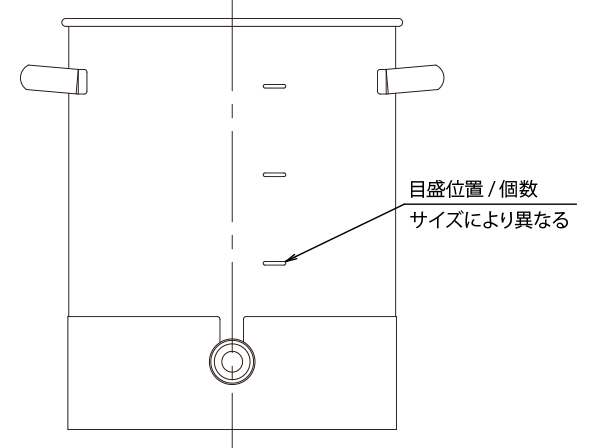 確認できます。タンクの外側から内側に向けて目盛りを打ち込み、内側へ凹ませています。