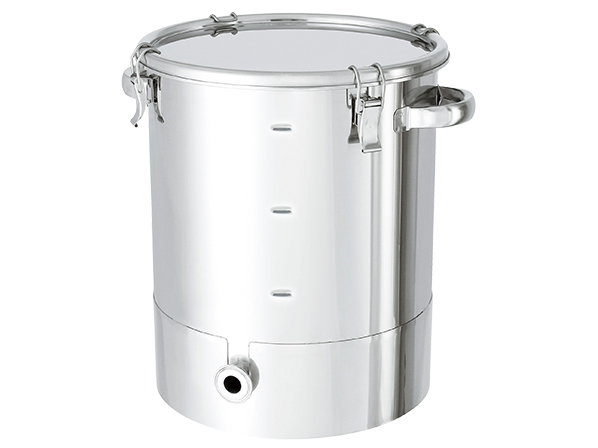 ○底板が排出方向に傾斜しており、液体が全て排出できるステンレス容器です。