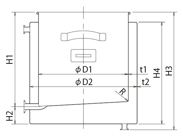 - ジャケット付バンド式密閉容器(底板傾斜タイプ)【採用事例】クラス100のクリーンルーム内で使用する注射製剤製造用ステンレス容器