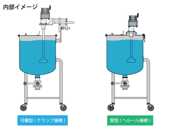 | 電気モータ式 | 竪型(ヘルール接続) | KU-DTK-SDE-[容器サイズ] | 撹拌機詳細 |