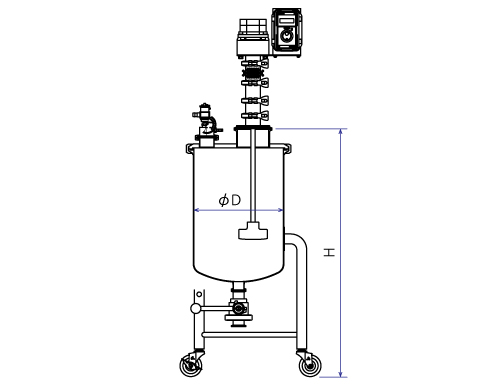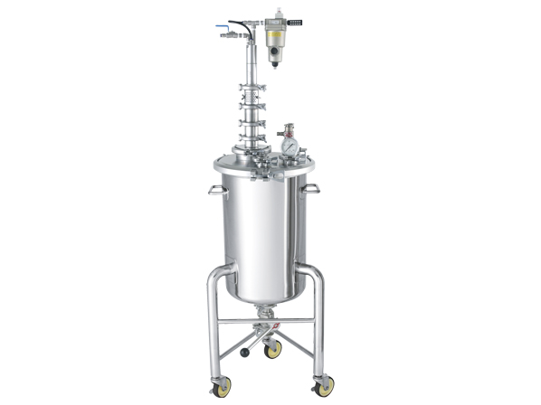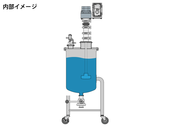 ベルヌーイ流撹拌機、ステンレス容器、バルブがセットになったユニット。泡立ちを抑えた撹拌に優れています。容器は加圧撹拌ができる加圧容器です。