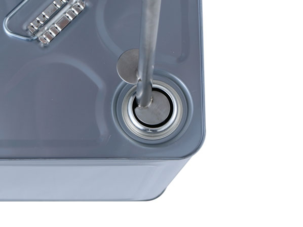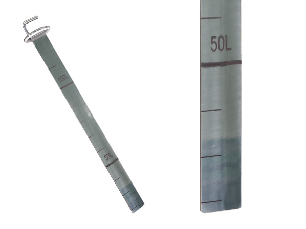 容器の上部から目視で大体の容量を確認でき、簡易的な検尺棒の役割を兼ねます。