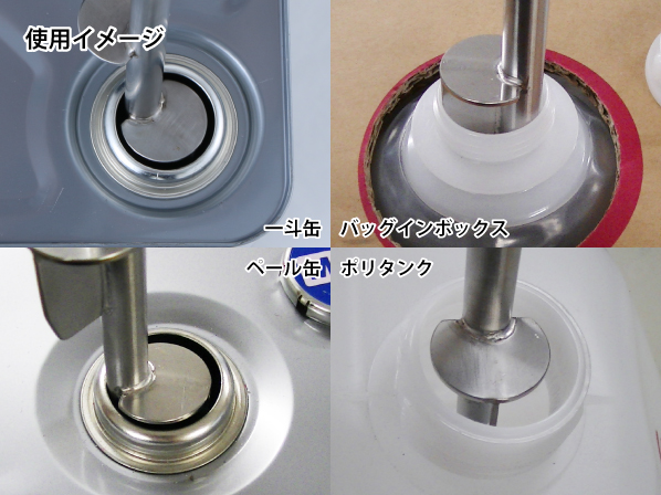 ○一斗缶やペール缶などの口栓部分から差し込んで使用できます(口径φ32mm以上)。