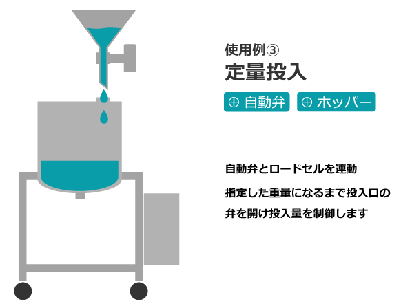 - (自動弁と組み合わせて)原料の定量投入・排出