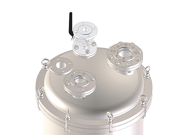 ・分散装置から送られてきた、車載用リチウムイオン二次電池の正極スラリーを保管タンクへ送るための、一時貯蔵タンクの蓋に取り付けて使用します。