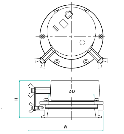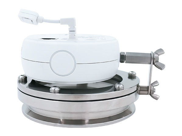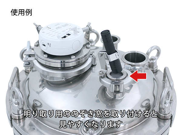○のぞき窓はヘルール接続のため着脱が簡単で、容器の蓋に4Sヘルールがあればすぐ設置できます。