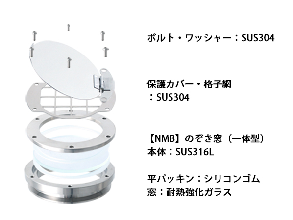 【NMB】のぞき窓(一体型)をベースにした一体型タイプです。○容器等のヘルールに取り付けることで、容器内部の状態を確認できます。