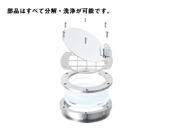 ○【NM】のぞき窓や【NM-F】のぞき窓 保護カバー付とは異なり、ヘルールから取り外す際にガラスが脱落しないので安全です。