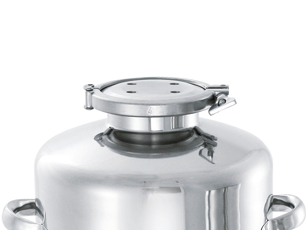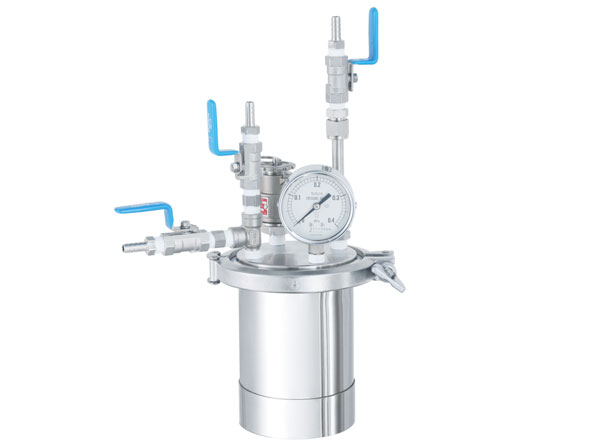 - 35L圧送容器【採用事例】液体原料の一時貯蔵・圧送ができる圧力容器 蓋を開けても安定するカスタマイズ