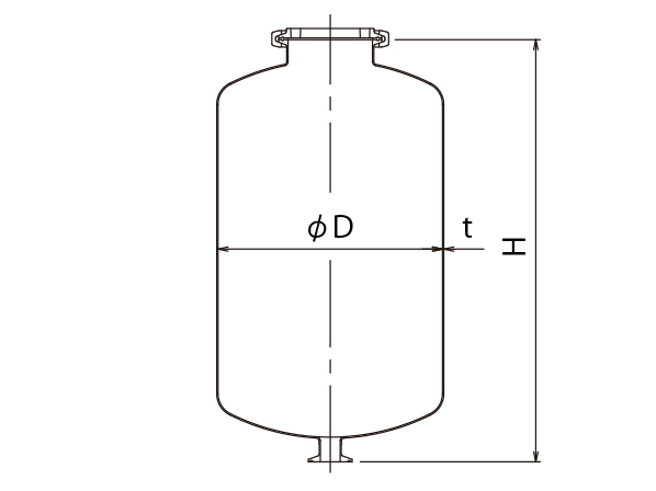 | 型式 | 容量 | 重量 | 内径 | 高さ | ドレン | 板厚 | 使用圧力 | 納期 |