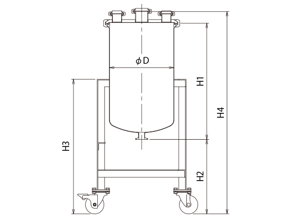 | 型式 | 容量 | 重量 | 内径 | 容器高 | ドレン高 | 架台高 | 全高 | 架台幅 | ドレン | 使用圧力 | 耐荷重 | 納期 |