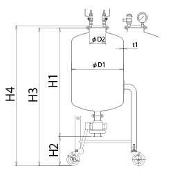 ○粉体と液体を溶解・脱泡し他の機器へ圧送するために使用する、ステンレス圧力容器ユニットのオーダーメイド事例です。