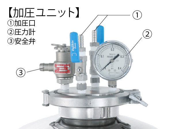 【アクセサリーセット】 ①加圧口 ②安全弁 ③圧力計 ④手動二方ボールバルブ