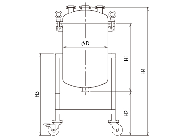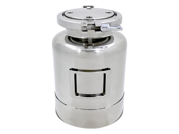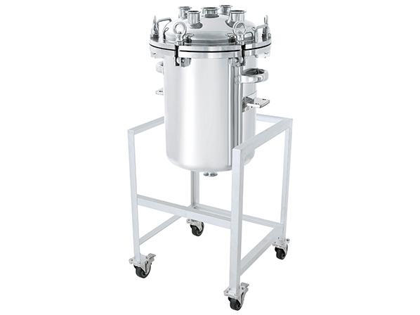 - ヘルールオープン加圧容器 角窓 脚付【採用事例】注射剤製造工程で薬液の不純物などを濾すフィルターケース