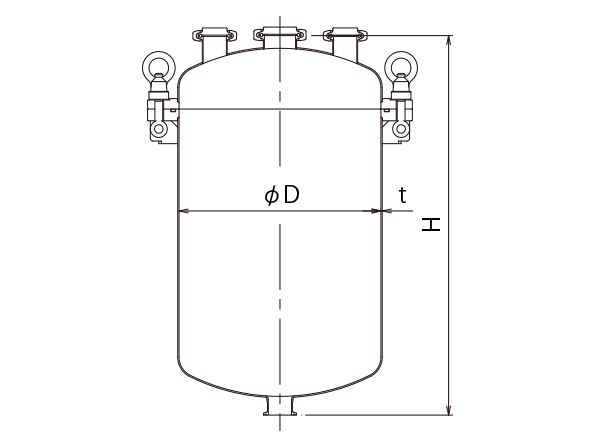 | 型式 | 容量 | 重量 | 内径 | 高さ | ドレン | 板厚 | 使用圧力 | 納期 |