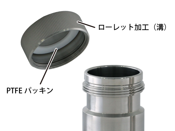 ○キャップ(蓋)の内側にPTFE製のパッキンが付いています。