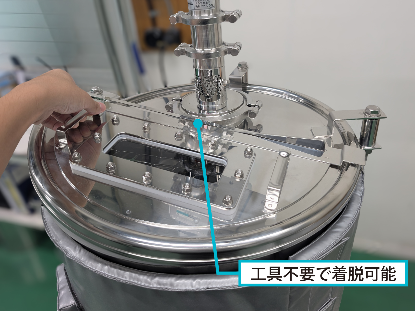 窓付き上蓋は工具不要で取り外し可能な設計のため、原料投入や確認作業をスムーズに行えます。