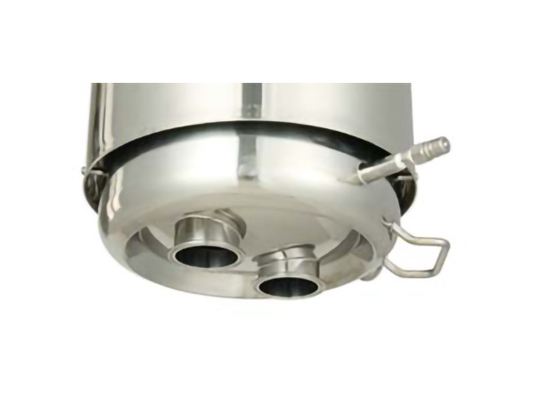 ・撹拌機で混合した後、底に付いている2連のヘルール継手から次の工程機器へ流し込みます。