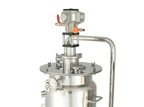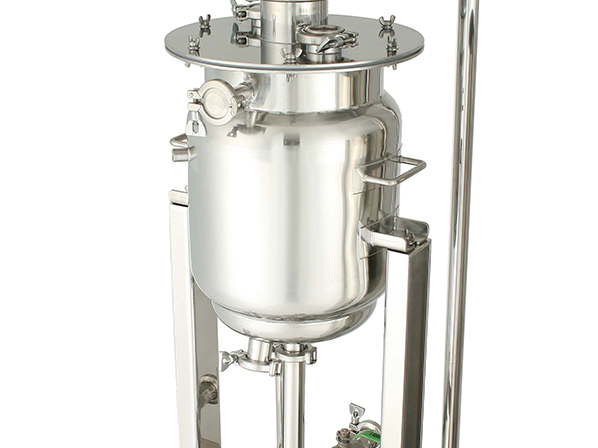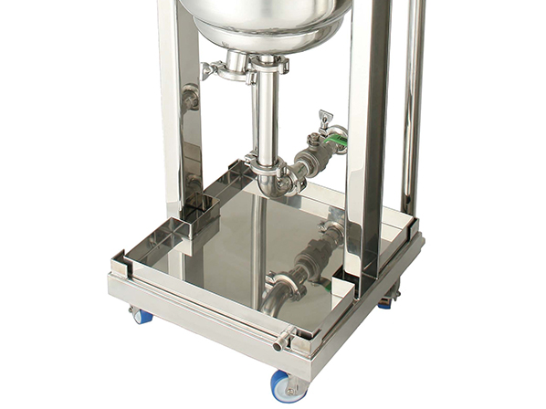 ・容器下部の排出口にはフルボアのボールバルブを取り付け、内容物をスムーズに排出できるようにしています。