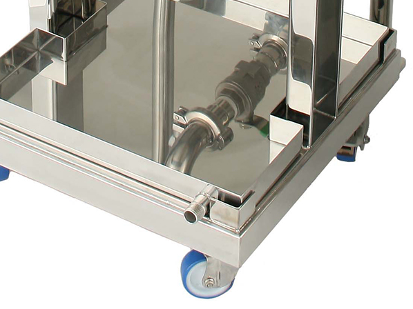 ・容器は架台付の専用台車に乗せられるようブラケットが付いており、洗浄等の際に架台から取り外しできます。